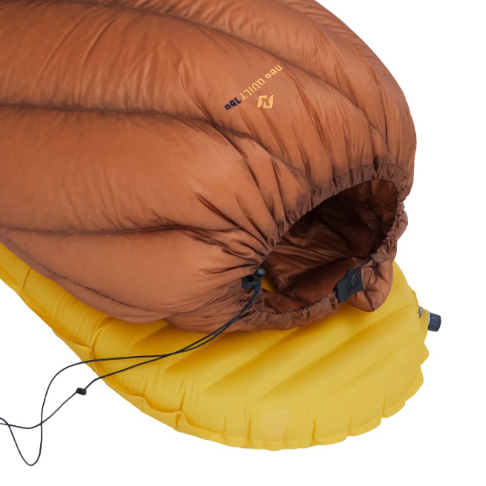 - Elastic drawcord: An elastic drawcord along neo Quilt’s upper edge lets you cinch it closed, sealing the quilt to minimize heat loss.