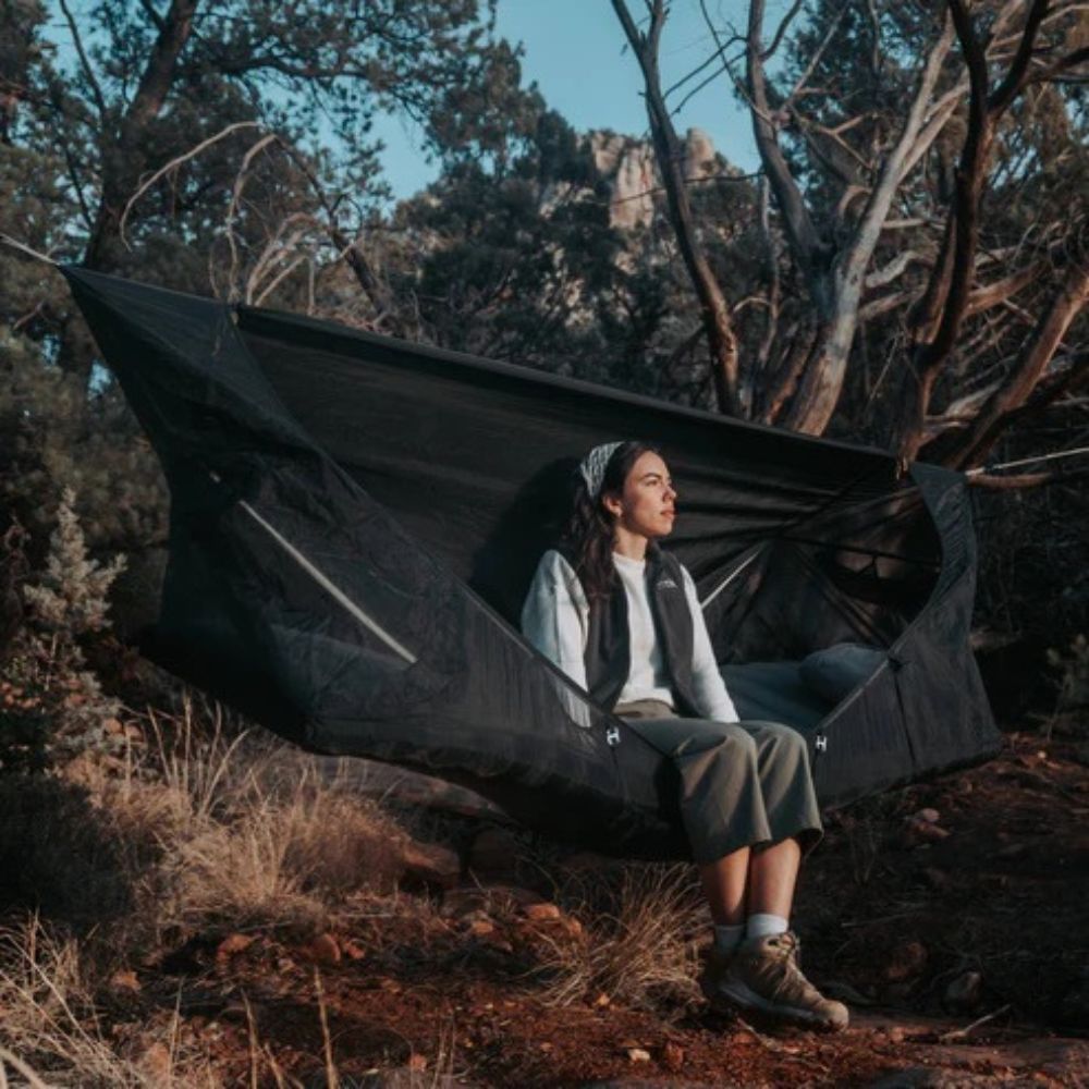 Haven Spectren ripustaminen on suunniteltu nopeaksi ja vaivattomaksi. Mukana tulevat levitystangot, ripustusjärjestelmä ja tarppi muodostavat yhtenäisen kokonaisuuden – ei kaaria pujoteltavaksi eikä monimutkaisia rakenteita koottavaksi. Leiri pystyssä nopeasti, ilman turhaa säätämistä. Ihanteellinen valinta silloin, kun yksinkertaisuus ja keveys ratkaisevat.