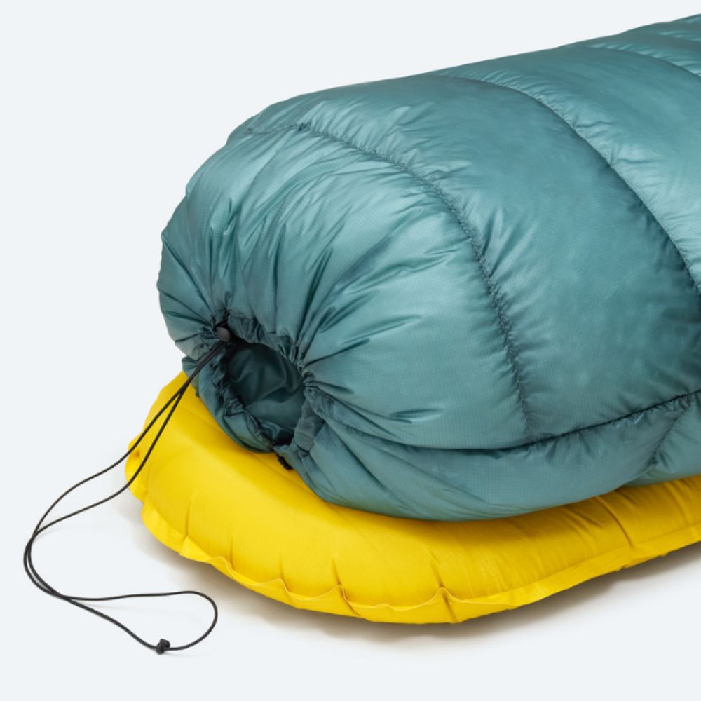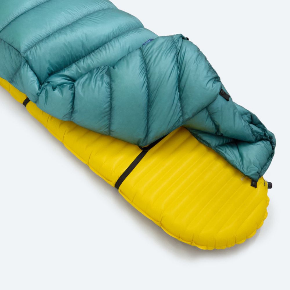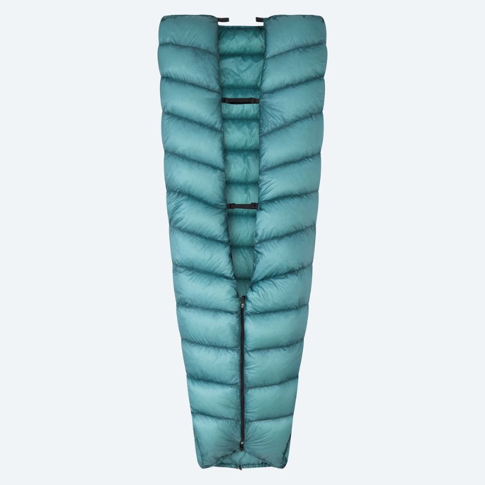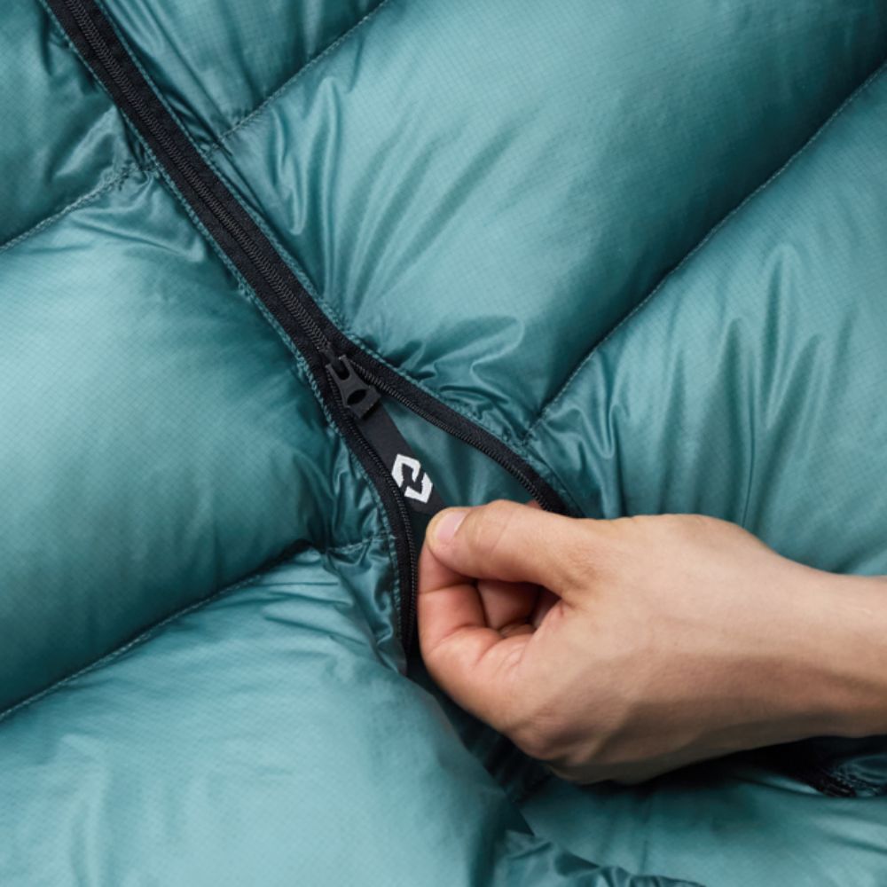 Lyhyellä vetoketjulla jalkopään voi sulkea kylmällä säällä ja avata lämpimämmissä olosuhteissa. Täysin avattuna topquilt toimii peittona.