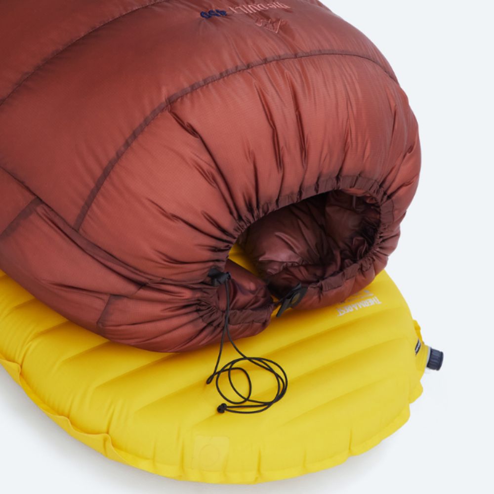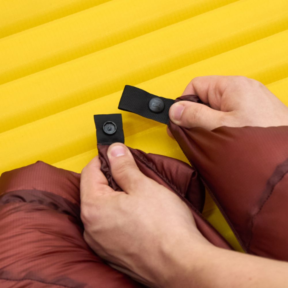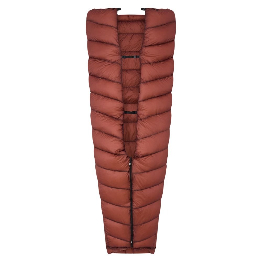 Lyhyellä vetoketjulla jalkopään voi sulkea kylmällä säällä ja avata lämpimämmissä olosuhteissa. Täysin avattuna topquilt toimii peittona.