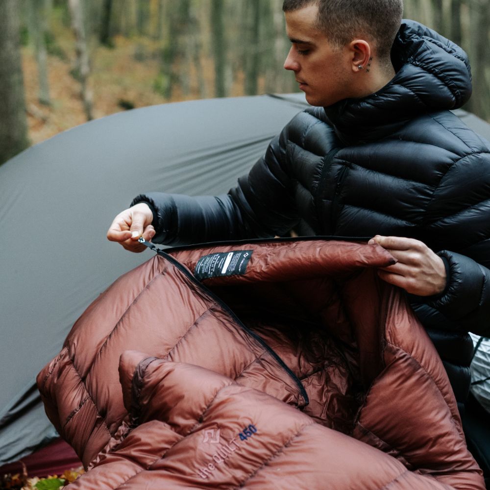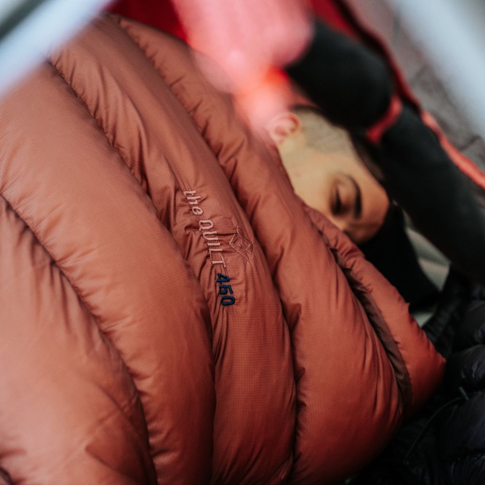 The Quilt 450 on kevyt topquilt, aikaisesta keväästä syksyyn. Rakenteeltaan se poikkeaa perinteisestä makuupussista siten, että selkäpuoli on avoin. Makuupussiin verrattuna topquilt on tilavampi ja sallii vapaamman nukkuma-asennon kyljellään, selällään tai polvet koukussa.
